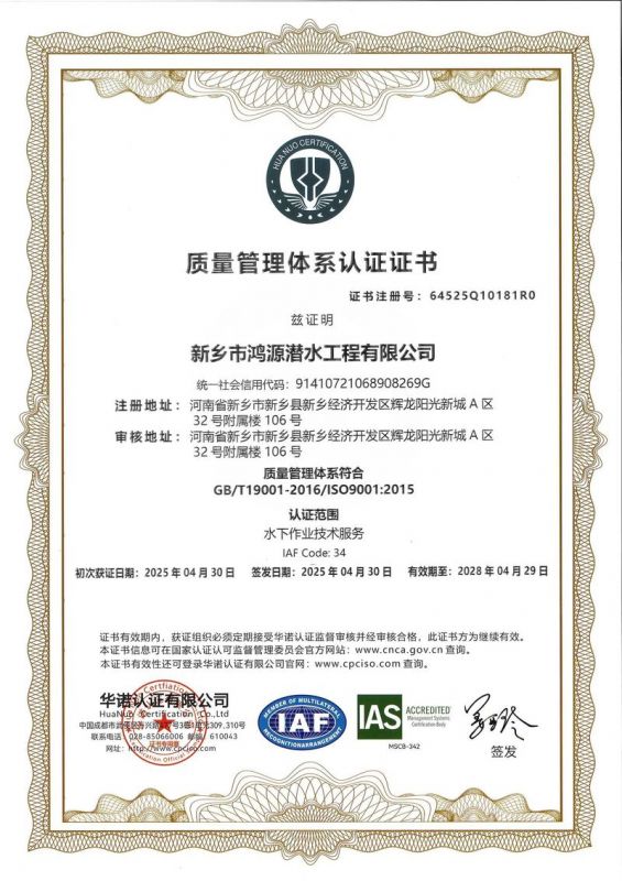 新鄉(xiāng)市鴻源潛水工程有限公司,有從事潛水行業(yè)二十多年的潛水團(tuán)隊(duì)。公司具有獨(dú)立法人資格,注冊(cè)資金600萬(wàn)元。   公司的潛水人員、潛水檢測(cè)人員、潛水焊接人員均經(jīng)過(guò)正規(guī)培訓(xùn),全部持有國(guó)內(nèi)權(quán)威機(jī)構(gòu)頒發(fā)的資質(zhì)證書(shū)。我公司水下焊接可靠,質(zhì)量?jī)?yōu)良,技術(shù)過(guò)硬,可水下焊接鋼管樁,水下焊接犧牲陽(yáng)極鋅塊,水下焊接連接梁,水下封堵焊接等等施工,報(bào)價(jià)合理,拒絕暴利,竭誠(chéng)為您服務(wù)!水下電焊工程,水下電焊報(bào)價(jià)合理水廠(chǎng)電廠(chǎng)的水池、水道清淤、泵房清理、管道鋪放、攔污柵清污、更換閘門(mén)起落、導(dǎo)流洞、水庫(kù)壩體等維修施工水下補(bǔ)強(qiáng)加固:對(duì)水利電力系統(tǒng)水庫(kù)、大壩及沿海內(nèi)河港口、碼頭等水工建筑物水下鋼結(jié)構(gòu)或混凝土結(jié)構(gòu)缺陷進(jìn)行。無(wú)論是對(duì)現(xiàn)在或?qū)?lái),都將是一項(xiàng)非常有意義的工作。水下焊接將成為水下作業(yè),水下安裝,水下維修等水下作業(yè)工程中不可或缺的重要工藝手段.公司堅(jiān)持“先進(jìn)的技術(shù)設(shè)備.優(yōu)質(zhì)的服務(wù)質(zhì)量.服務(wù)效率.熱情的服務(wù)態(tài)度,為生產(chǎn)經(jīng)營(yíng)理念,以拒絕暴利合理收費(fèi)為原則立足全國(guó)市場(chǎng)。我們將以?xún)?yōu)質(zhì)的產(chǎn)品與售后服務(wù)來(lái)打造用戶(hù)良好體驗(yàn)。愿同新老客戶(hù)竭誠(chéng)合作、互惠互利、共創(chuàng)輝煌!水下電焊工程,水下電焊報(bào)價(jià)合理,鋼圍堰清淤公司鴻源-水下電焊工程,水下電焊報(bào)價(jià)合理,鋼圍堰清淤公司,水下電焊工程。      新鄉(xiāng)市鴻源潛水工程有限公司我公司成功打造鴻源優(yōu)質(zhì)服務(wù)。公司的潛水人員、潛水檢測(cè)人員、潛水焊接人員均經(jīng)過(guò)正規(guī)培訓(xùn),全部持有國(guó)內(nèi)權(quán)威機(jī)構(gòu)頒發(fā)的資質(zhì)證書(shū)。經(jīng)過(guò)多年經(jīng)營(yíng),公司具備公司具有獨(dú)立法人資格。
