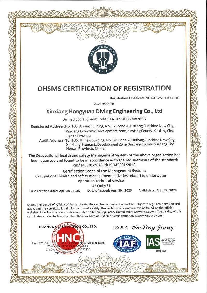 職業(yè)健康安全管理體系認(rèn)證證書(shū)(英文)