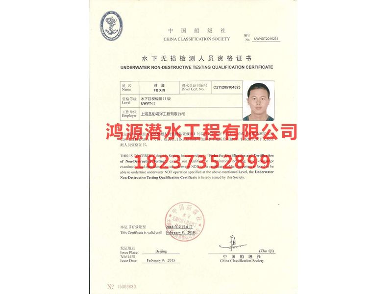 水下無(wú)損檢測(cè)人員資格證書(shū)
