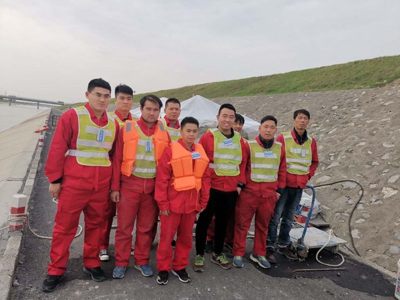 在這次南水北調(diào)工程水下修復項目中,新鄉(xiāng)市鴻源潛水工程有限公司高度重視,以專業(yè)的技術(shù)和實力工作,在上班前都會開安全會,講解水下工作要注意的事項和工作內(nèi)容。 工作人員在 開始工作時,要求必須潛水員配戴上潛水裝具經(jīng)自己和專業(yè)人員檢查合格后 ,才能下水 工作。下水后對要修復的位置進行錄像檢測,檢測破損情況制定修復方案。對破損部位進行風鎬破拆,把破拆后的水泥襯砌板打撈出水再對破損處進行模板安裝和水下混凝土澆筑,等到混凝土凝固后折模后,再錄像檢測合格后完工。